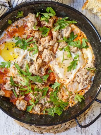 Eggs Fried On Tomatoes With Tuna